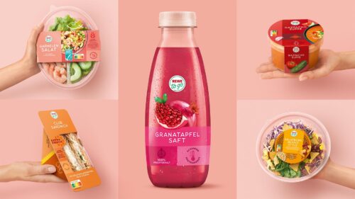 Bereits seit 2024 erscheinen Rewe to go Produkte im neuen Design. Bei mehr als 90 Produkten wird der Relaunch sukzessive umgesetzt. Neben der Entwicklung des Designs war die Hamburger Agentur Hajok Design auch für die Umsetzung und finale Artwork-Erstellung zuständig.