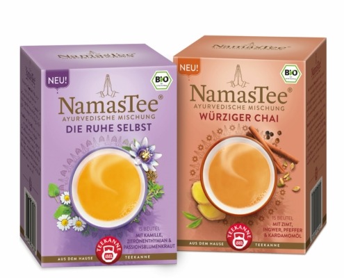 Zwei neue Teesorten Würziger Chai und Die Ruhe Selbst erweitern die Namas Tee Range.