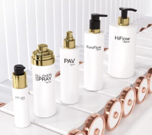 Ins Auge fallen sollen Kosmetikprodukte für den sogenannten Massenmarkt. Hier hat Aptar, spezialisiert auf Dosiersysteme, ein Konzept entwickelt, das Pflegeprodukte auf den ersten Blick durch Kappen und Sprühköpfe differenzieren kann. Das bedeutet: Aufwertung im FMCG-Bereich. Verschiedene Veredlungstechniken sollen zudem einen Aha-Moment hervorrufen.